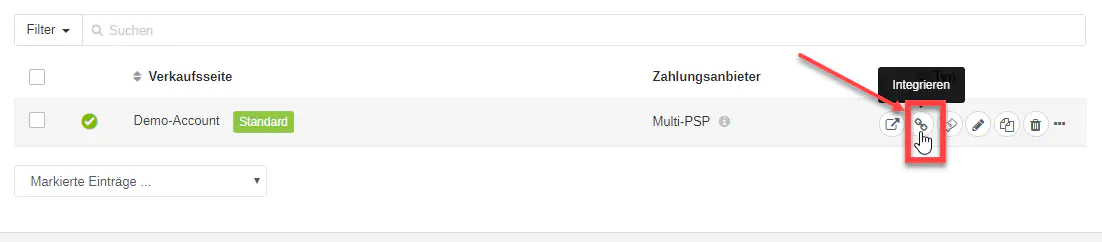 2. Wählen Sie Ihre Payrexx Verkaufsseite