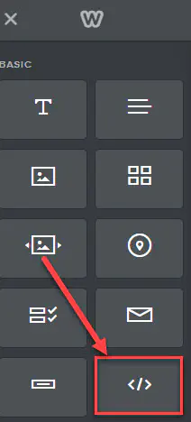Klicken Sie das Symbol </> an und ziehen Sie es an die Stelle an der Sie den Button oder Ihr iFrame gerne hätten.