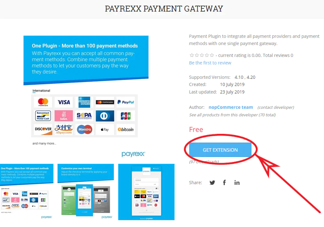 Laden Sie das kostenlose Payrexx Plugin für NopCommerce auf der NopCommerce Seite herunter.
