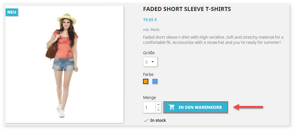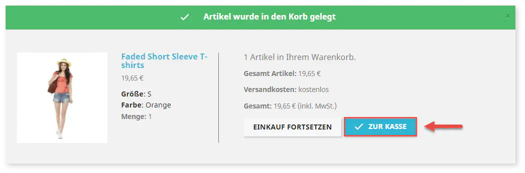 1) Ihr Kunde wählt das gewünschte Produkt/die gewünschten Produkte und fügt Sie zu seinem Warenkorb hinzu: