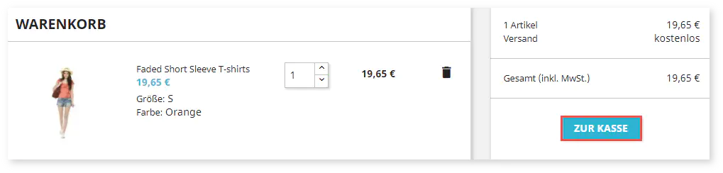 2) Der Kunde überprüft den Warenkorb und geht weiter zum Checkout: