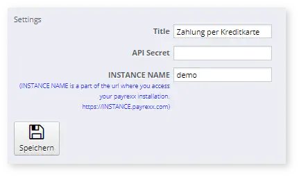 - Unter Instance Name versteht man den Namen, den Sie bei Ihrer Registrierung bei Payrexx gewählt haben. Sie können diesen auch an der URL Ihres Payrexx Shops erkennen (https://INSTANZ.payrexx.com). Hinweis: Schreiben Sie in das Feld nur den Instanznamen, nicht die gesamte URL.