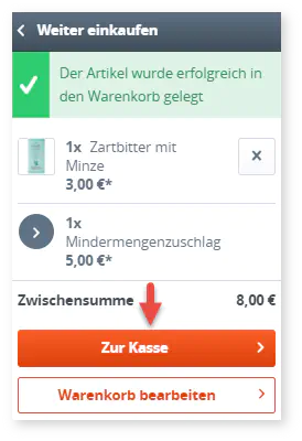 1) Ihr Kunde wählt das gewünschte Produkt/die gewünschten Produkte und fügt Sie zu seinem Warenkorb hinzu.