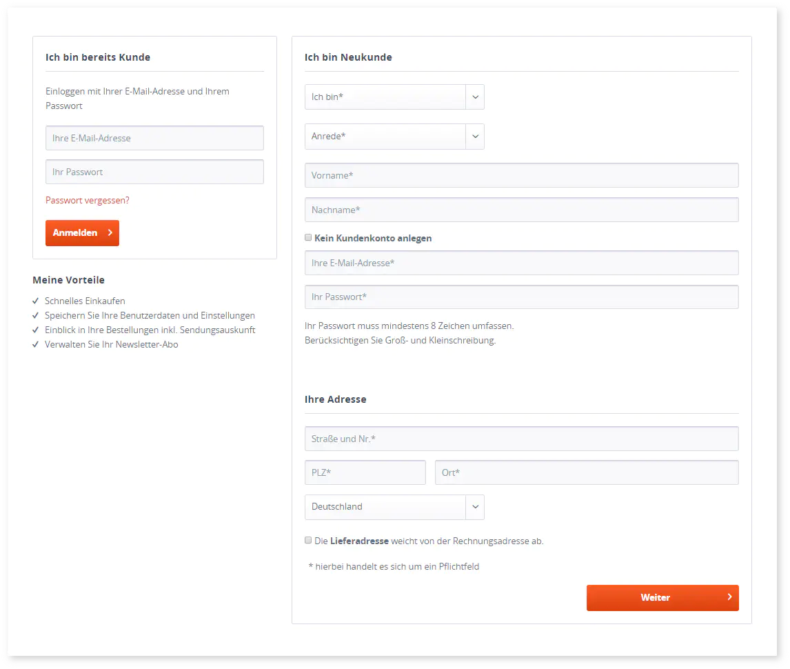 3) Der Kunde gibt seine persönlichen Daten an und geht weiter zum Kaufabschluss
