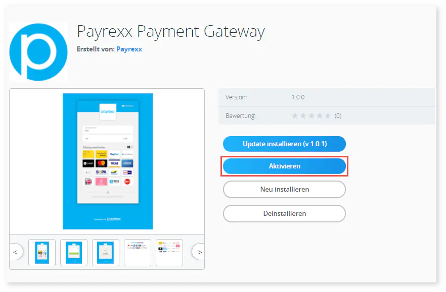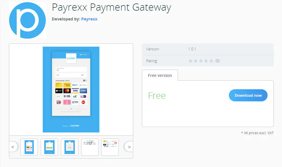 Suchen Sie im Shopware Store nach dem Payrexx Plugin oder klicken Sie auf den Link und laden Sie es herunter. https://store.shopware.com/payrexx