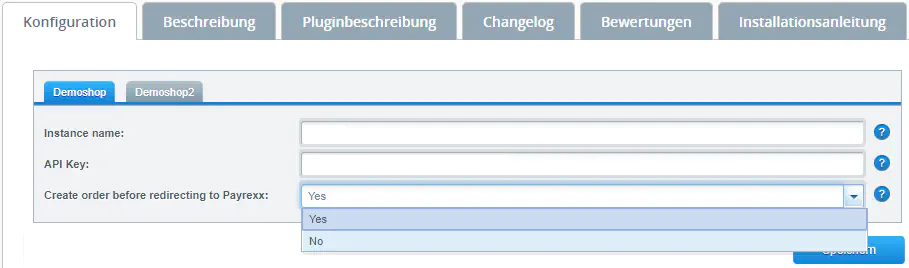 Konfigurieren Sie das Plugin. Bei der Konfiguration müssen Sie die folgenden Informationen angeben: - Instanzname (Unter dem Instanznamen versteht man den Namen, den Sie bei der Payrexx Registration gewählt haben. Sie können diesen auch anhand der URL Ihres Payrexx Account ermitteln (https://INSTANZ.payrexx.com) - API Key (diesen finden Sie in Ihrem Payrexx Account -> siehe nächster und übernächster Schritt). - Create order before redirecting to Payrexx: