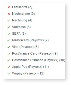 In diesem Feld sehen Sie dann, welche Zahlungsarten aktiviert sind: