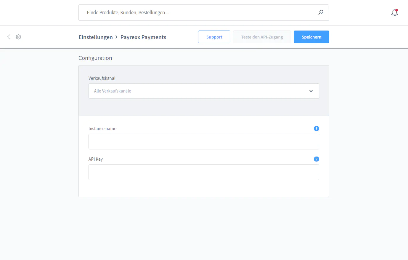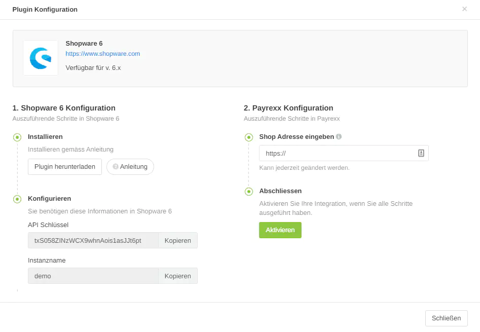 Bei der Konfiguration müssen Sie die folgenden Informationen angeben: - Instanzname (unter dem Instanznamen versteht man den Namen, den Sie bei der Payrexx Registrierung gewählt haben. Sie können diesen auch anhand der URL Ihres Mini-Shops ermitteln (https://INSTANZ.payrexx.com). - API Key (diesen finden Sie in Ihrem Payrexx Account unter «Einstellungen > API > API Secret».