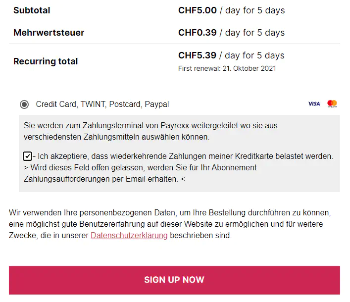 Diese Option wird aktiviert wenn ein Kunde das Kontrollkästchen nicht auswählt aber ein Abonnement erwerben möchte.