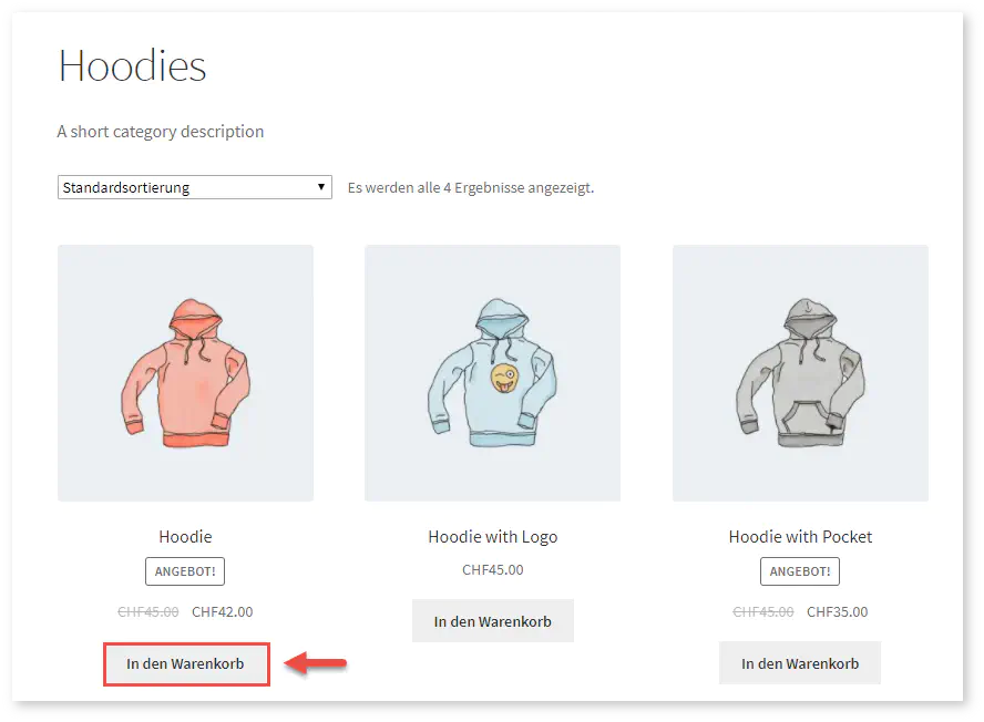 1) Ihr Kunde wählt das gewünschte Produkt/die gewünschten Produkte und fügt Sie zu seinem Warenkorb hinzu: