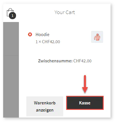 2) Der Kunde überprüft den Warenkorb und geht weiter zum Checkout: