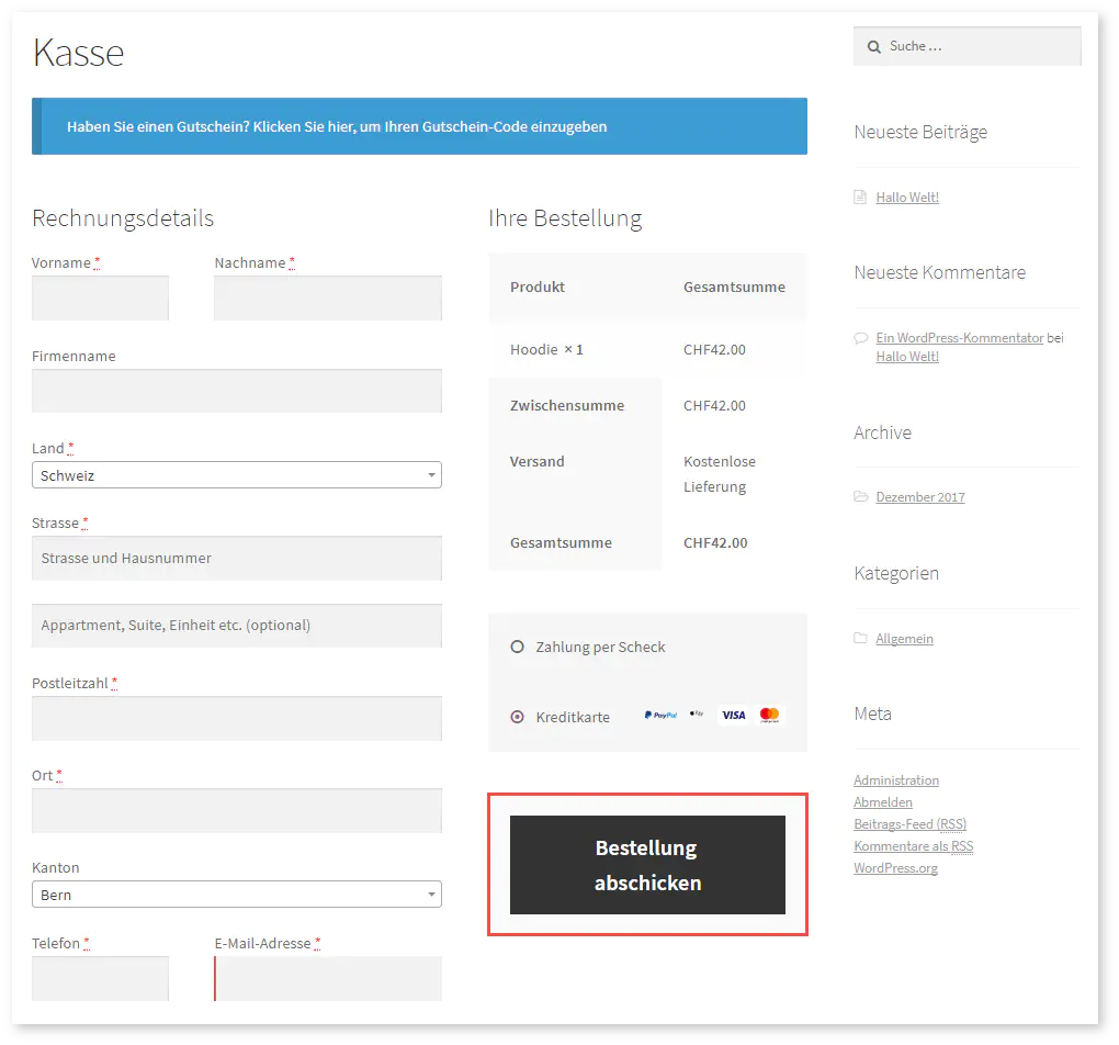 3) Der Kunde füllt das Formular aus und wählt “Bestellung abschicken”: