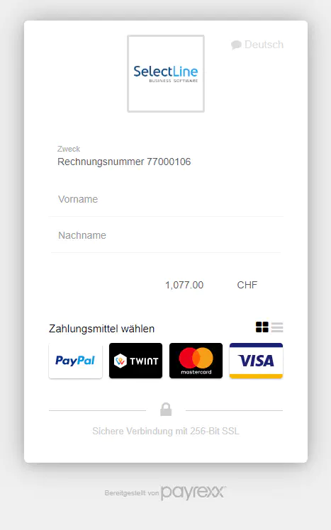 SelectLine Software hilft Ihnen, Ihre Büroadministration so einfach und effizient wie nur möglich zu organisieren. Integrieren Sie Payrexx in SelectLine und bieten Sie Ihren Kunden und Kundinnen die Möglichkeit, Ihre Rechnungen schnell und unkompliziert zu bezahlen.