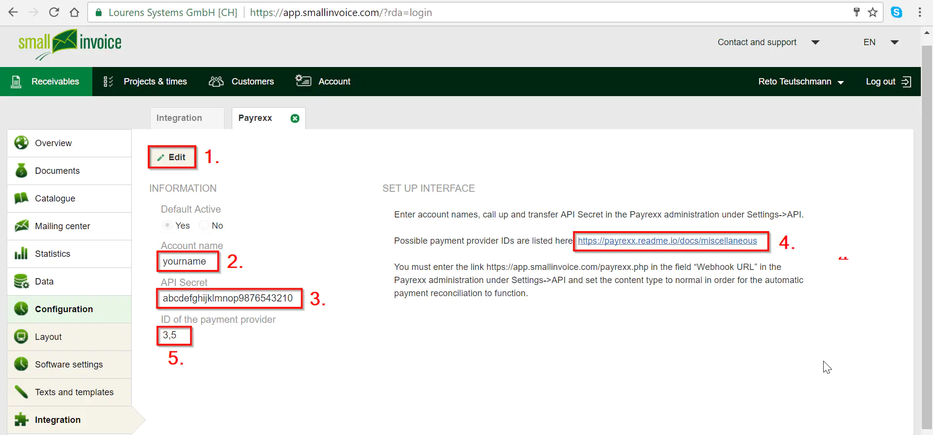 - Geben Sie die folgende URL ein: https://app.smallinvoice.com/payrexx.php