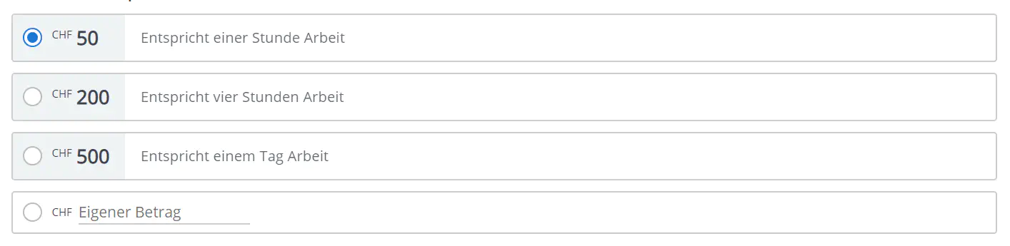 Bei beiden Varianten können Sie optional ein freies Betragsfeld hinzufügen.