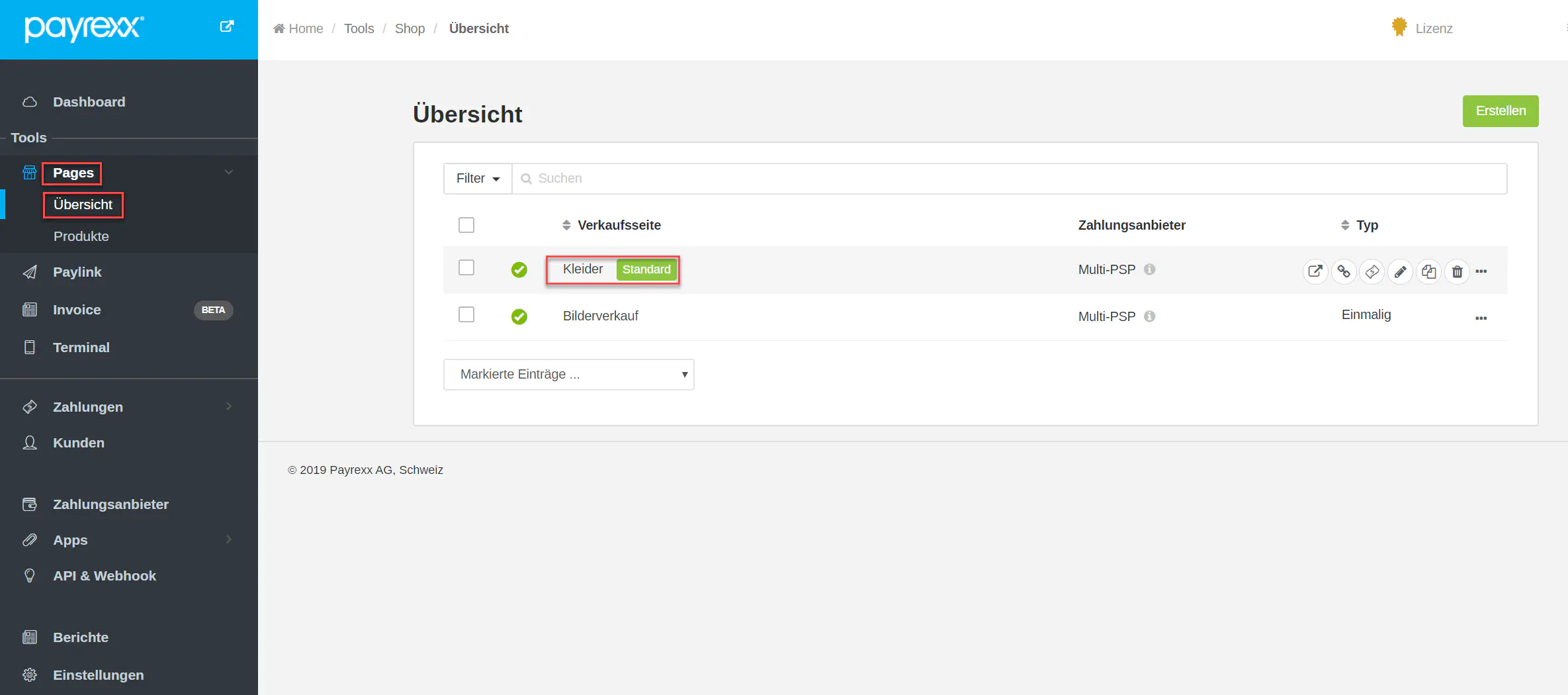 Navigieren Sie zu “Pages > Übersicht”