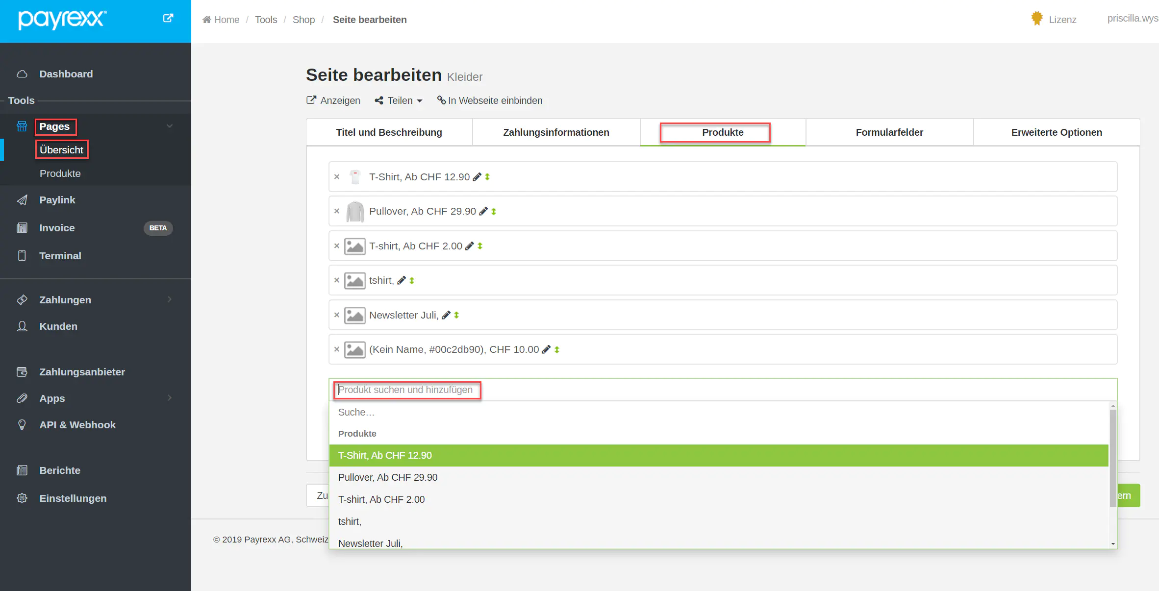 Wenn Sie alle diese Schritte korrekt befolgt haben, wurden die Produkte erfolgreich zu Pages hinzugefügt.