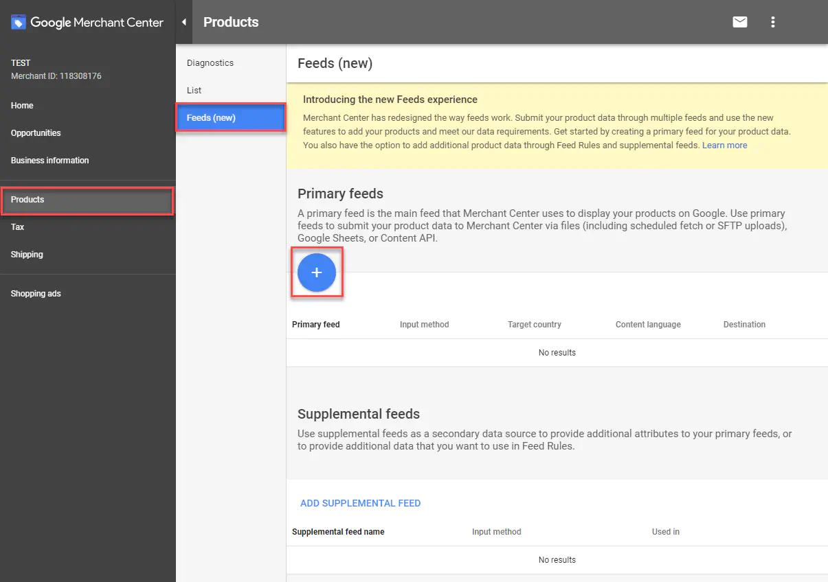 6. Fügen Sie anschliessend ein neues Produkt unter «Products > Feeds (new)» hinzu.