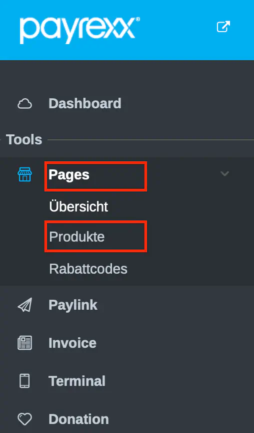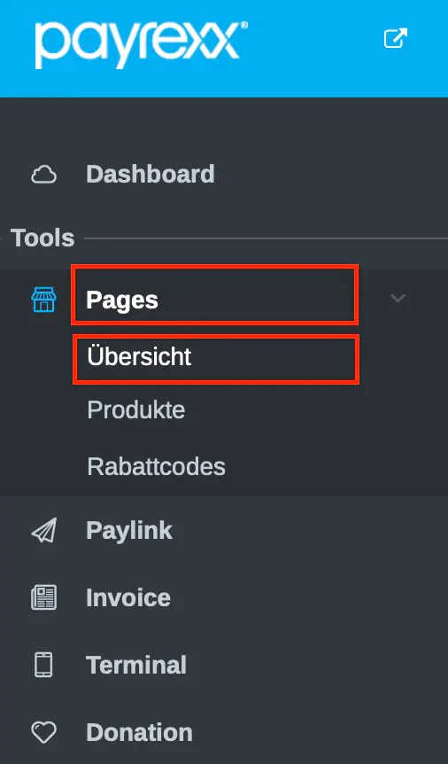 Wählen Sie in Ihrem Payrexx Dashboard «Pages» und dann «Übersicht».