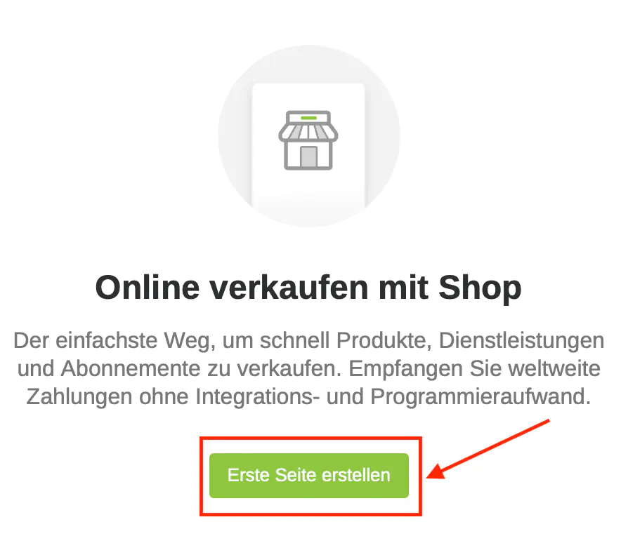 Dort können Sie sich eine kleine Webseite erstellen, die Sie später separat brauchen oder als Button in Ihre bisherige Webseite einbinden. Klicken Sie hierfür auf «Erste Seite erstellen».