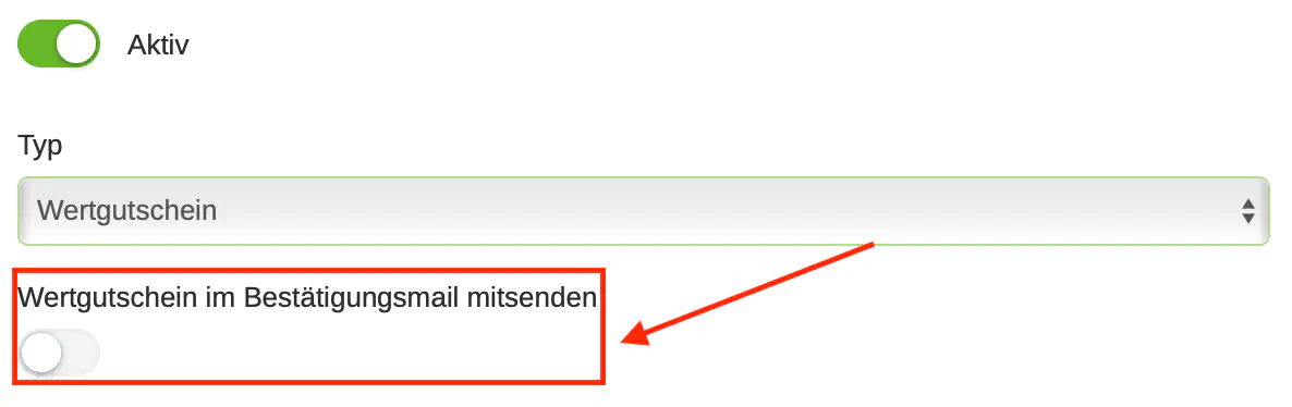 Sie haben jetzt die Möglichkeit Ihrem Kunden automatisch ein Gutschein als PDF zuzusenden. Aktivieren Sie dazu einfach «Wertgutschein im Bestätigungsmail mitsenden».