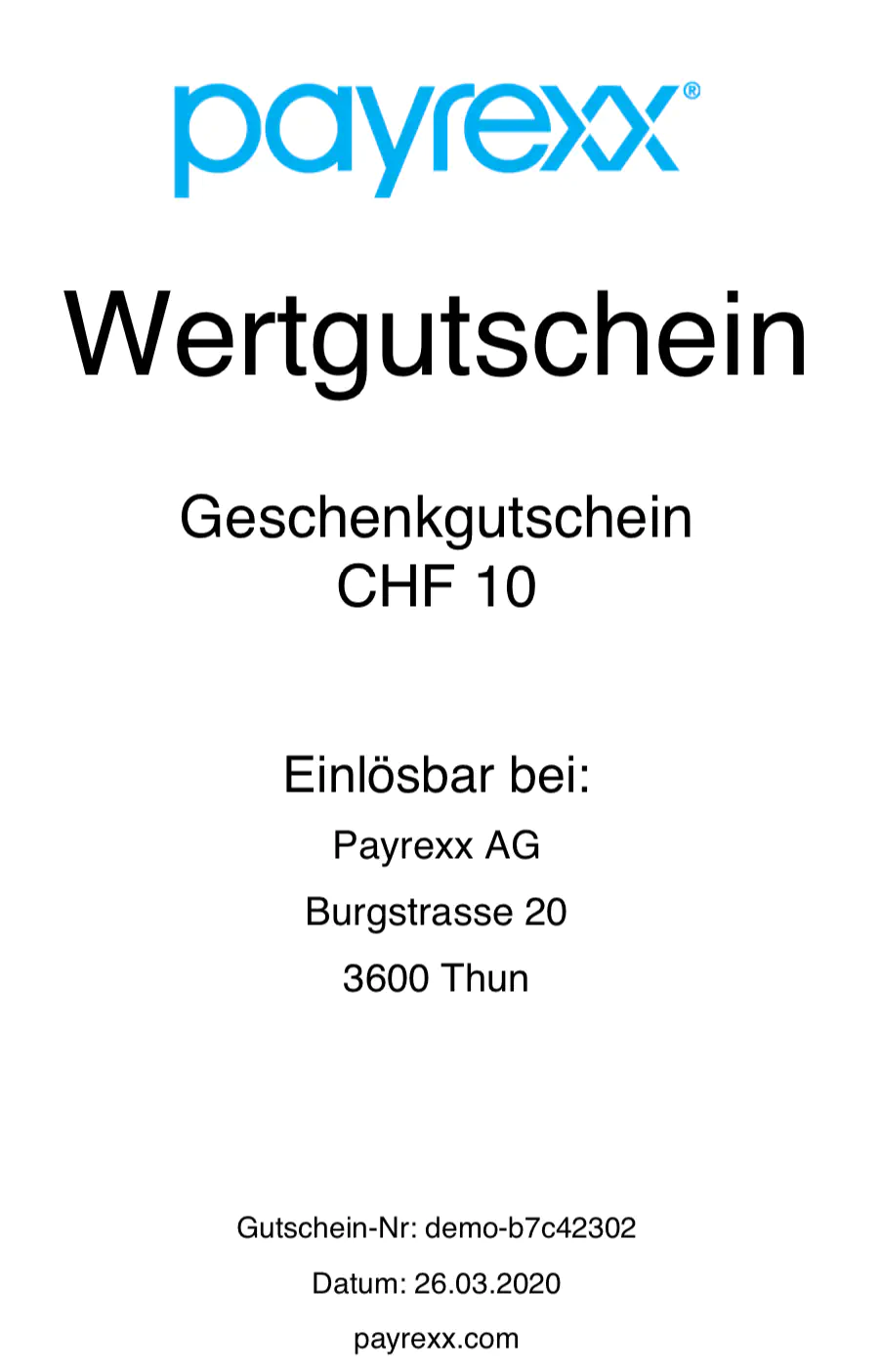 So sieht beispielsweise ein Gutschein für Payrexx aus: