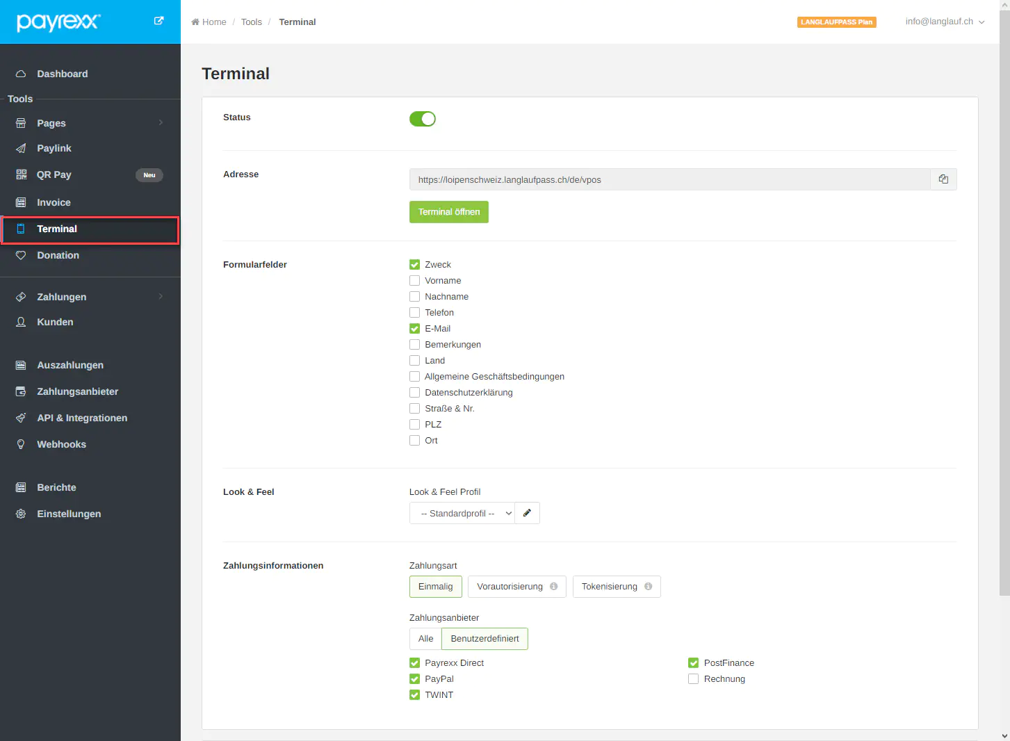Der erste Schritt um Zahlungen über das QR Pay Tool empfangen zu können ist die Einrichtung des Terminals in Ihrem Payrexx Konto.