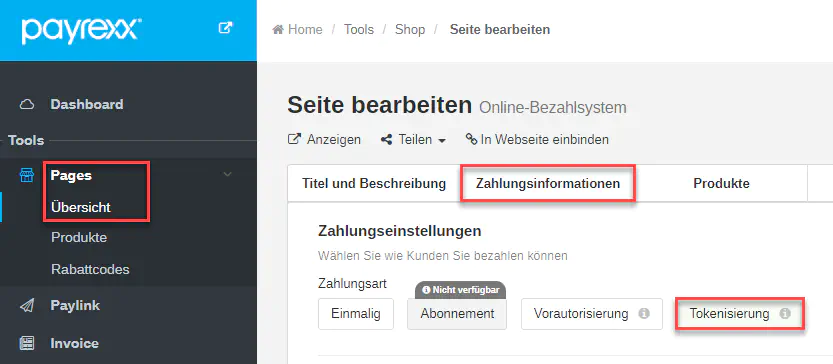 Nach der Registrierung eines Zahlungsanbieters, welcher Tokenisierung unterstützt, können Sie die Zahlart «Tokenisierung» ganz einfach in unseren Tools auswählen.
