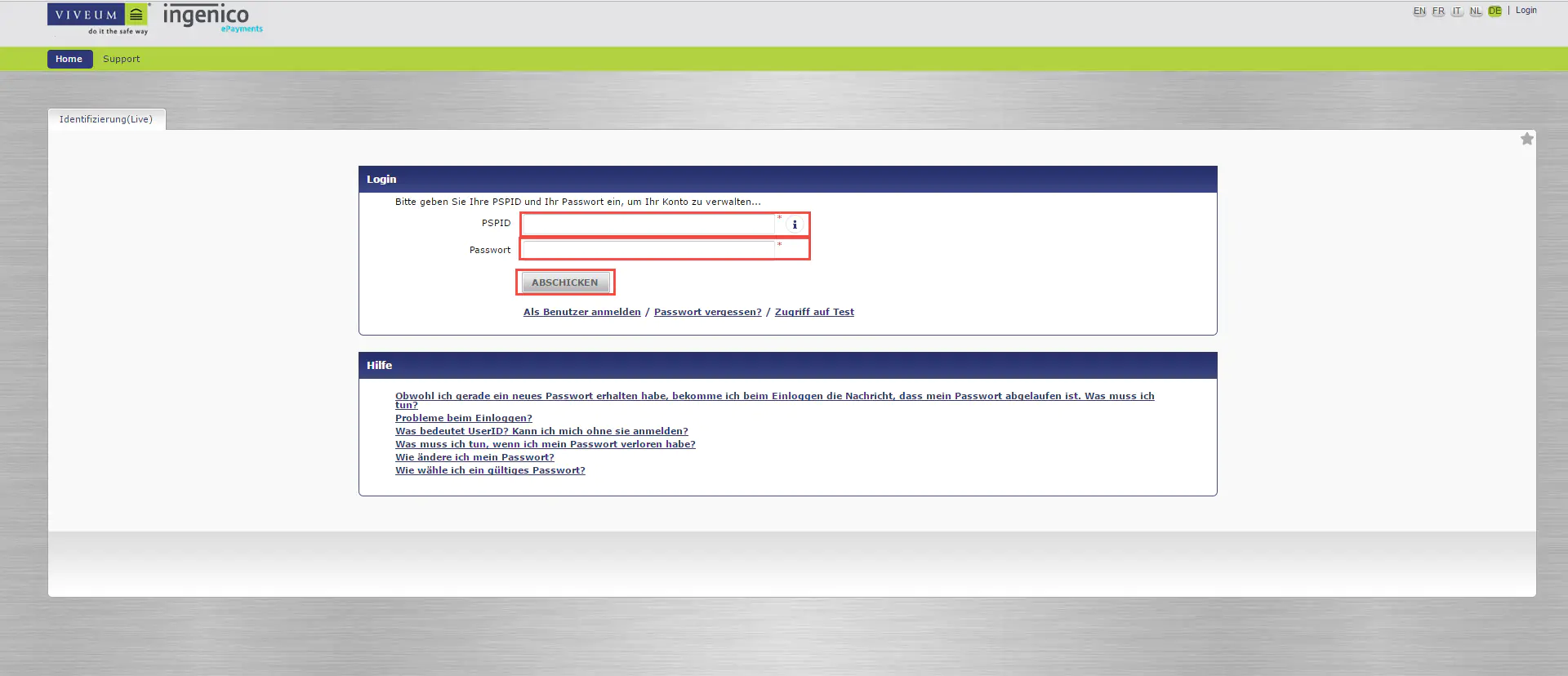 - Link zum Login-Formular des angegebenen Zahlungsanbieters.