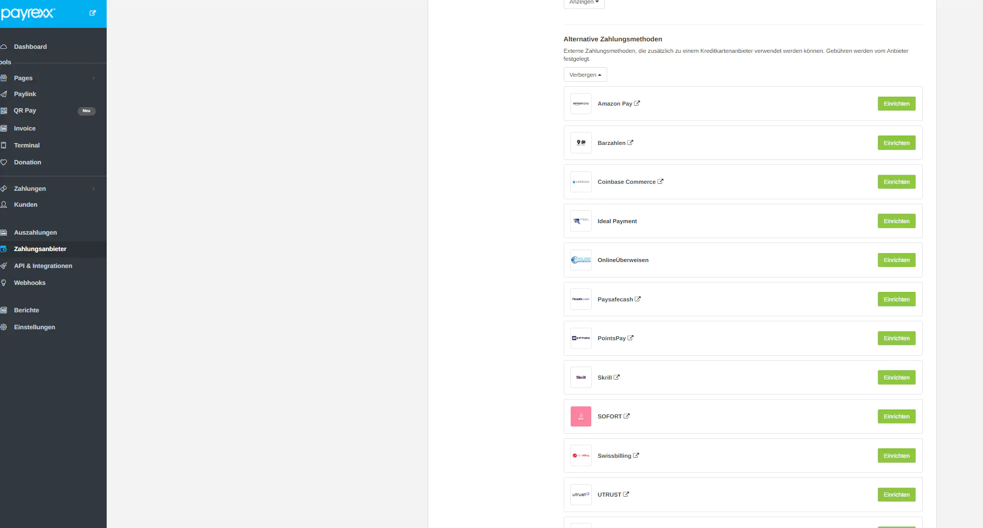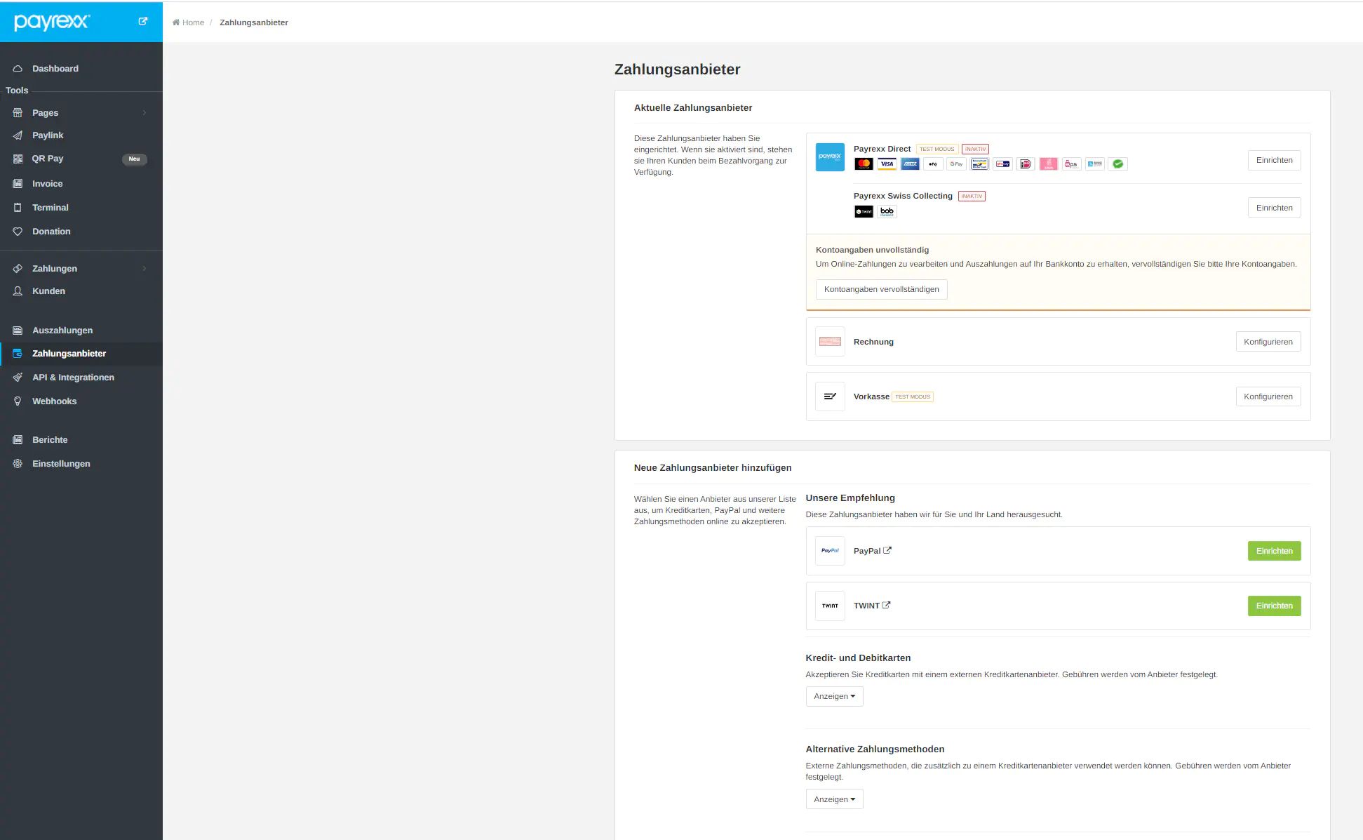 Navigieren Sie in Ihrem Payrexx Backend zu «Zahlungsanbieter»