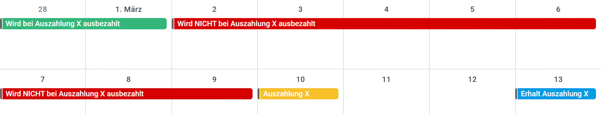 Bei allen Intervallen werden Ihre Transaktionen erst ausbezahlt, wenn der Erhalt mindestens 8 volle Tage zurückliegt.