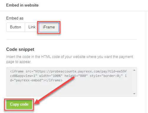 If you want to publish your sales page as an iFrame choose “iFrame” and copy the code below.