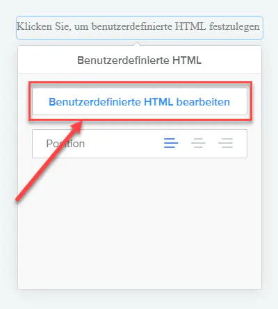 Click in the resulting field and then select “Custom HTML”. Paste either the previously copied code for the button or the iframe.