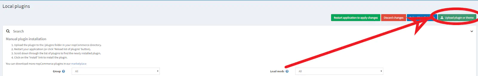 In your NopCommerce account go to “Configuration > Local plugins”.