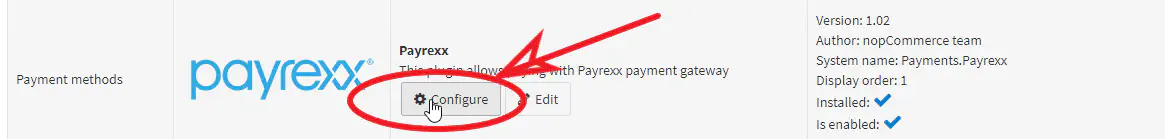 Scroll down until you see “Payrexx”. Choose “Edit”.