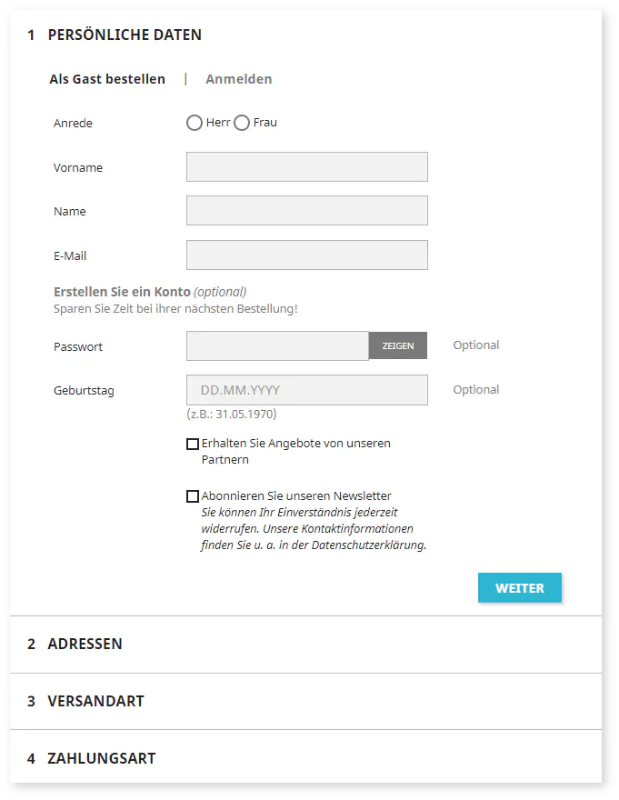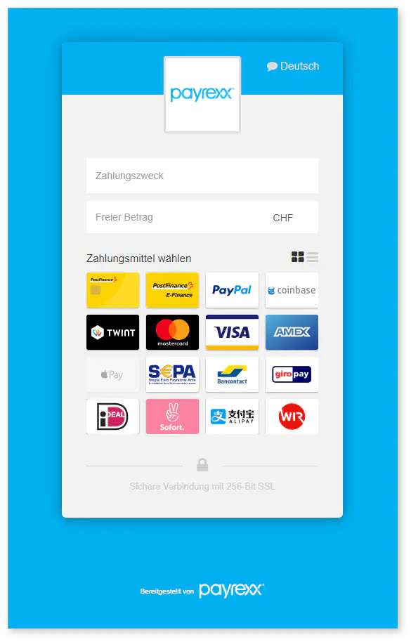 5) The customer is forwarded to the Payrexx checkout. There he can pay with the desired payment method:
