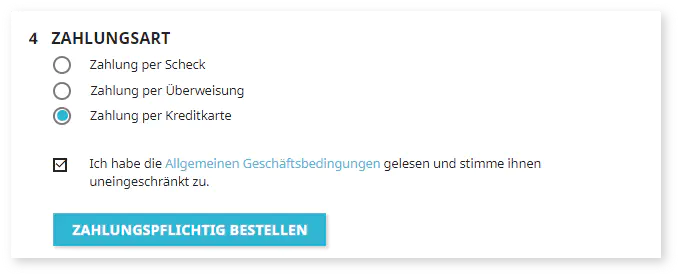 4) Finally, he arrives at the payment method section. There he then chooses to pay by credit card.