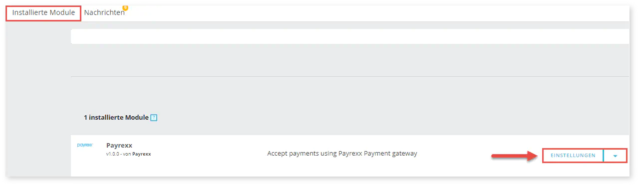 Configure the module by navigating to “Modules > Modules and Services > Installed modules”. The Payrexx Gateway should now be displayed there. Choose **"**Settings".