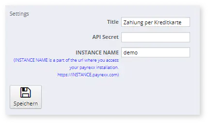 - The Instance Name. It is the name you chose when you registered with Payrexx. You can also recognize this from the URL of your Payrexx shop (https://INSTANZ.payrexx.com). Note: Write only the instance name in the field, not the entire URL.