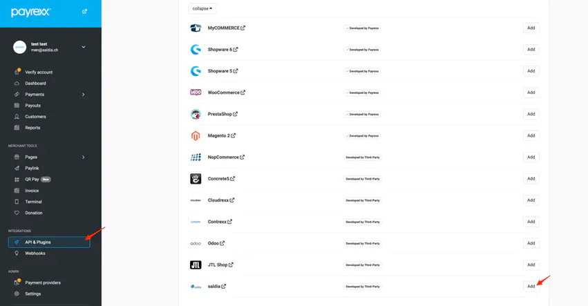 Note: To accept credit card transactions, you need a Payrexx account with at least one active payment method (recommended Payrexx Swiss Collecting), and a saldia account.