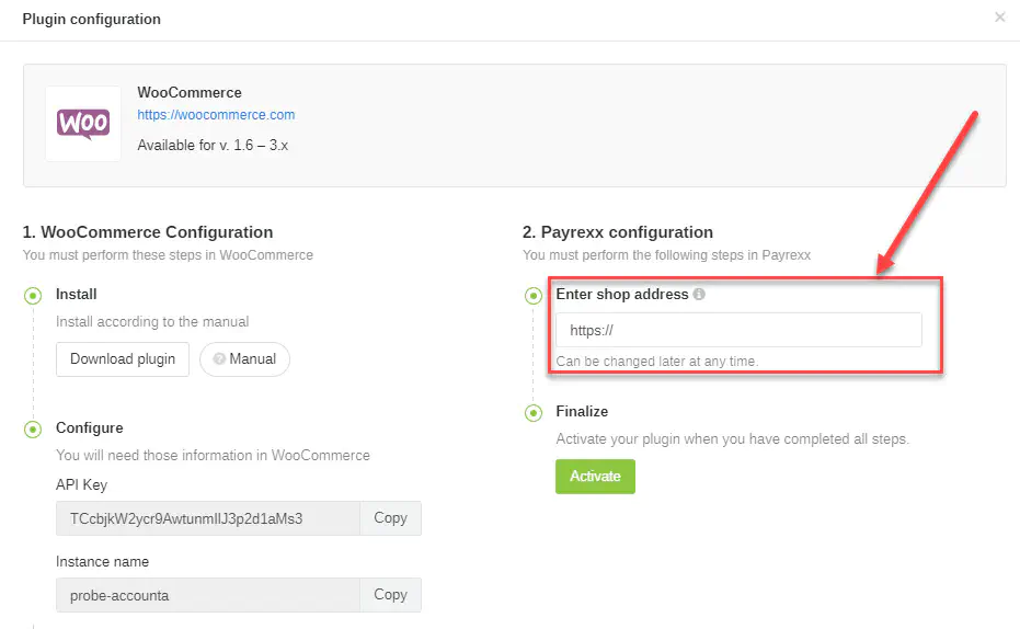 Now configure the plugin. Enter the address of your shop under “Enter shop address”. Here you will also find the API key.