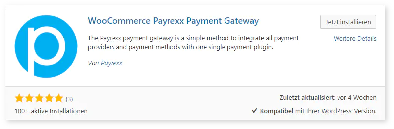 Look for the “Payrexx” plugin and click install now: