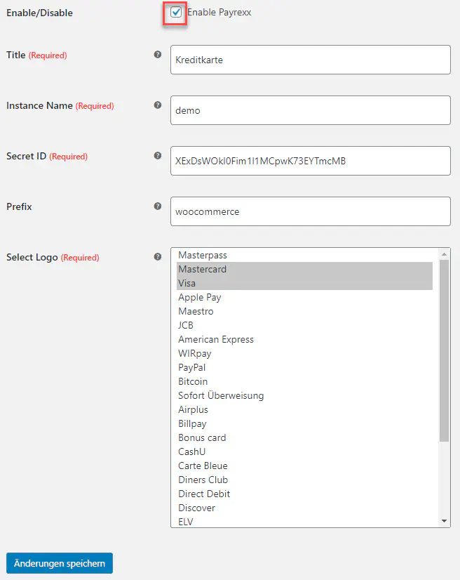 - Do not forget to check “Enable Payrexx” to activate Payrexx.