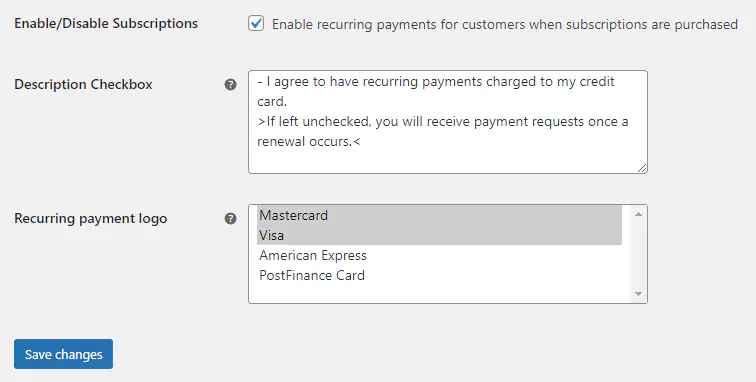 - Select the payment logos you integrated for recurring payments