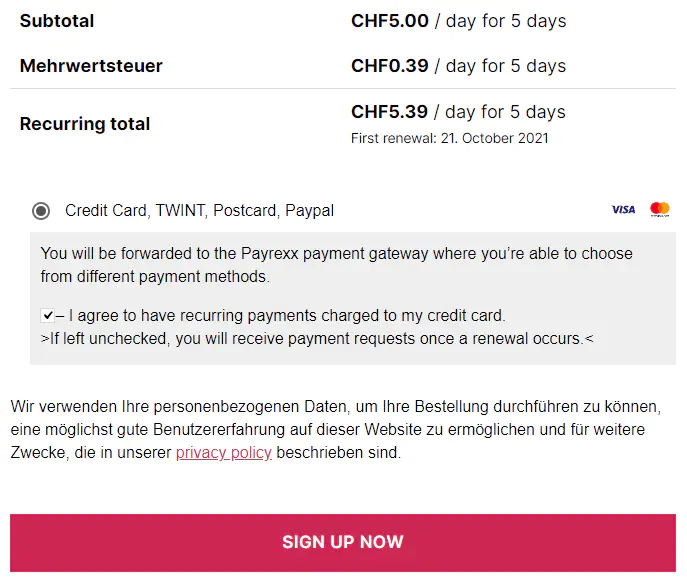 Note: This option doesn’t require you to configure the Payrexx plugin as seen in Recurring payments with WooCommerce above.