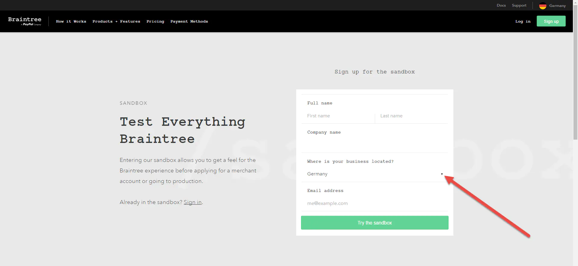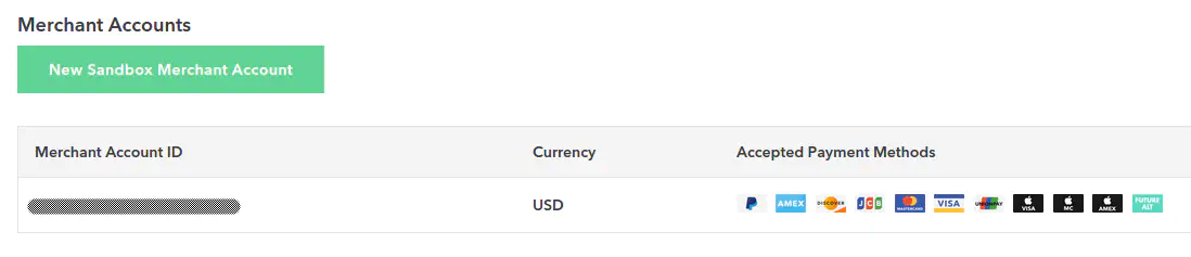 - After you created and tested the Braintree test account, you can create the productive account. Create a Braintree account now.