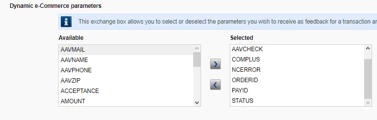 Activate COMPLUS, PAYID, ORDERID and STATUS und Dynamic e-Commerce parameters.
