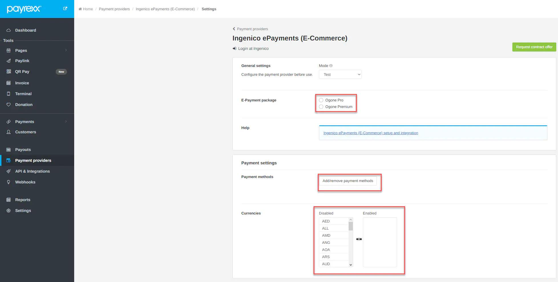 Setup Ingenico ePayment in your Payrexx Dashboard and request a contract