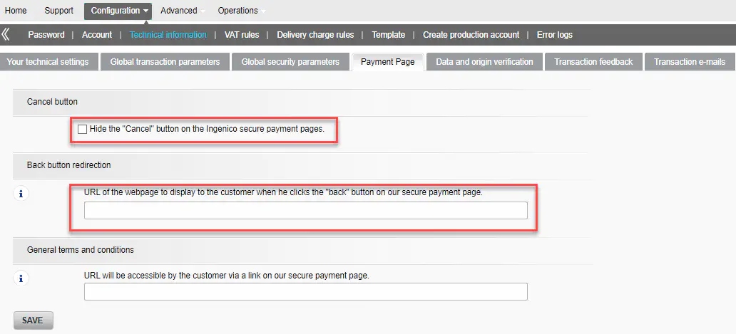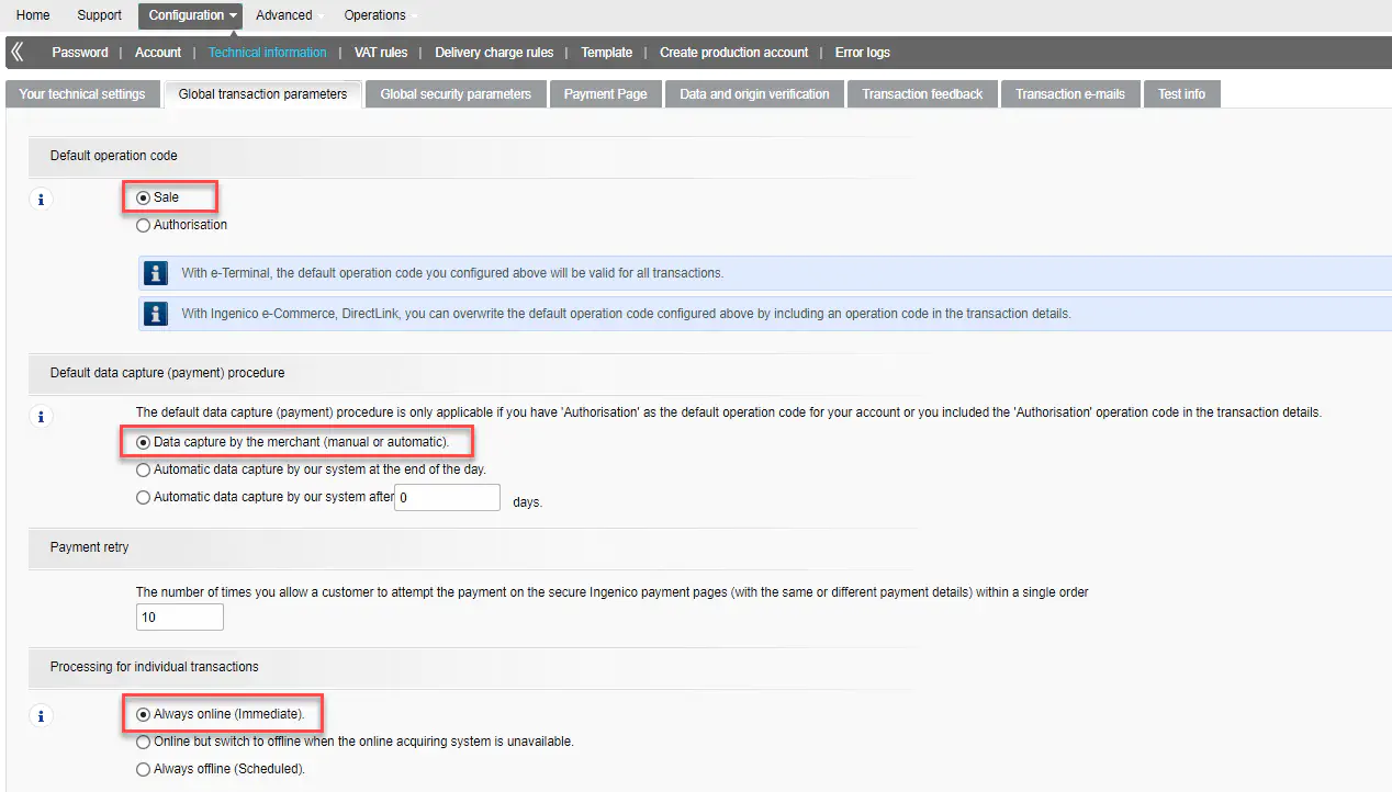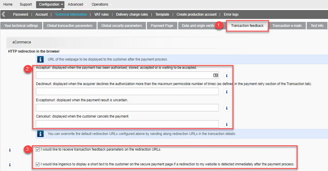 Configuration of the Ingenico ePayment account
