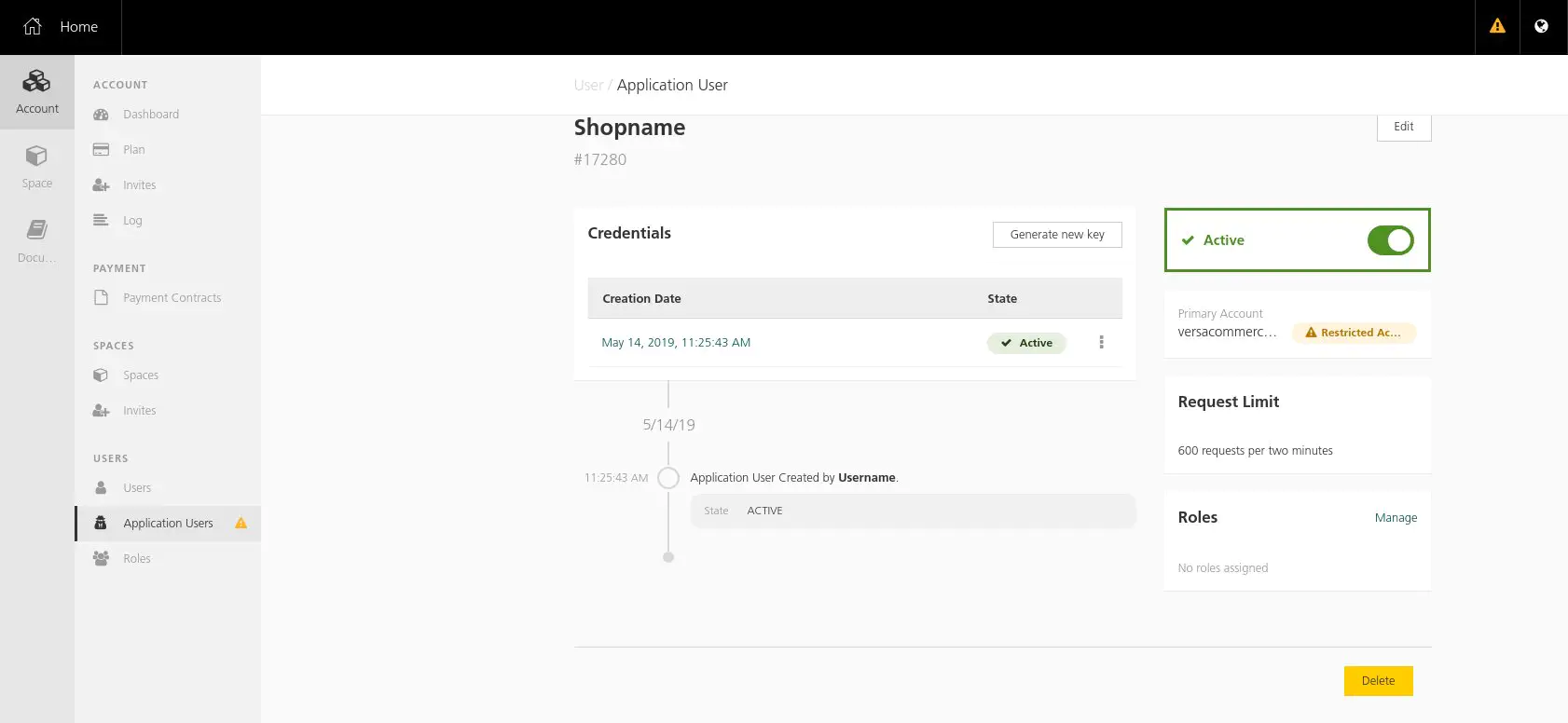Then generate the three security keys with “Create user” and enter them in the Payrexx shop in accordance with the instructions in the next step.